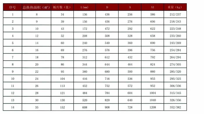 單片換熱面積:0.238㎡
